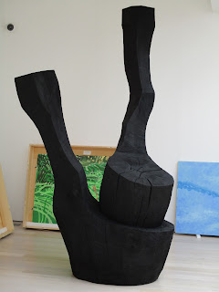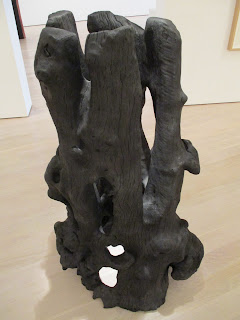 I happened across this wonderful exhibition by happy accident whilst visiting the John Craxton In Greece exhibition at the Osborne Samuel gallery on the floor below (the subject of my last post), and it was curiosity, that led me to climb the stairs to Annely Juda on the floor above, where my nosiness was rewarded with these potent, mysterious wood and metal constructions by David Nash. Nash is a consummate craftsman knowing how best to fully exploit the grain and fissures in the wood that he works. Trees in the forests of their natural habitat have an inherent spirituality, all too aware perhaps of their precious role in the ecosystem of this planet. And although the trees depicted here are fallen and decapitated, Nash appears to resurrect that sense of living energy and spirit, giving new life through his artistic interventions on these timbers.
