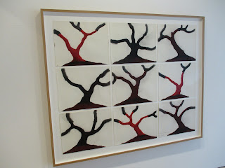 I discovered the exhibition on the day after the opening Private View, and was lucky to have these works, and the gallery space all to myself. In the upstairs gallery there was work in progress in the exhibition space, as workmen were busily engaged in boxing up some David Hockney paintings. And as I was leaving I was nearly squashed by more art handlers bringing in some figurative Paolozzi sculptures. I hope to visit again for a further look by which time the workmen should have packed up and gone.