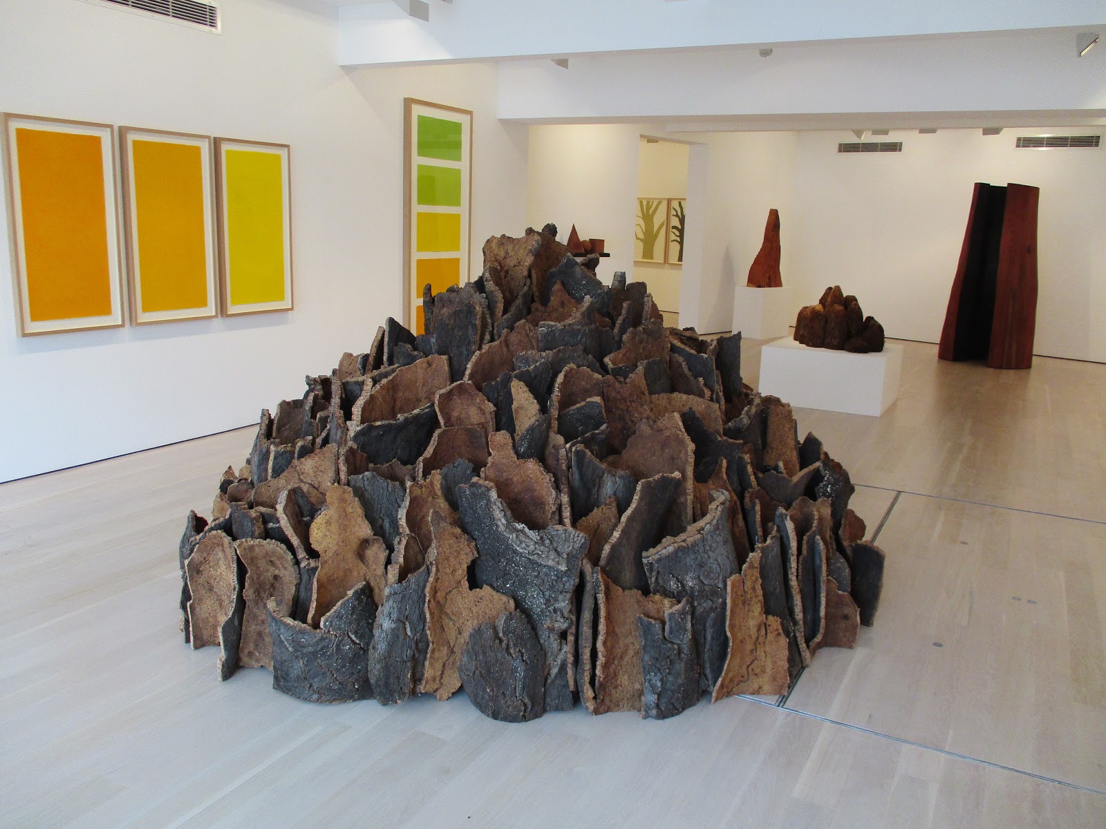 The centrepiece of the downstairs gallery is Cork Dome (2012), a large, wonderfully textural mound, constructed from slivers of cork bark. It is a self-contained craggy, maze. Both a citadel and refuge.