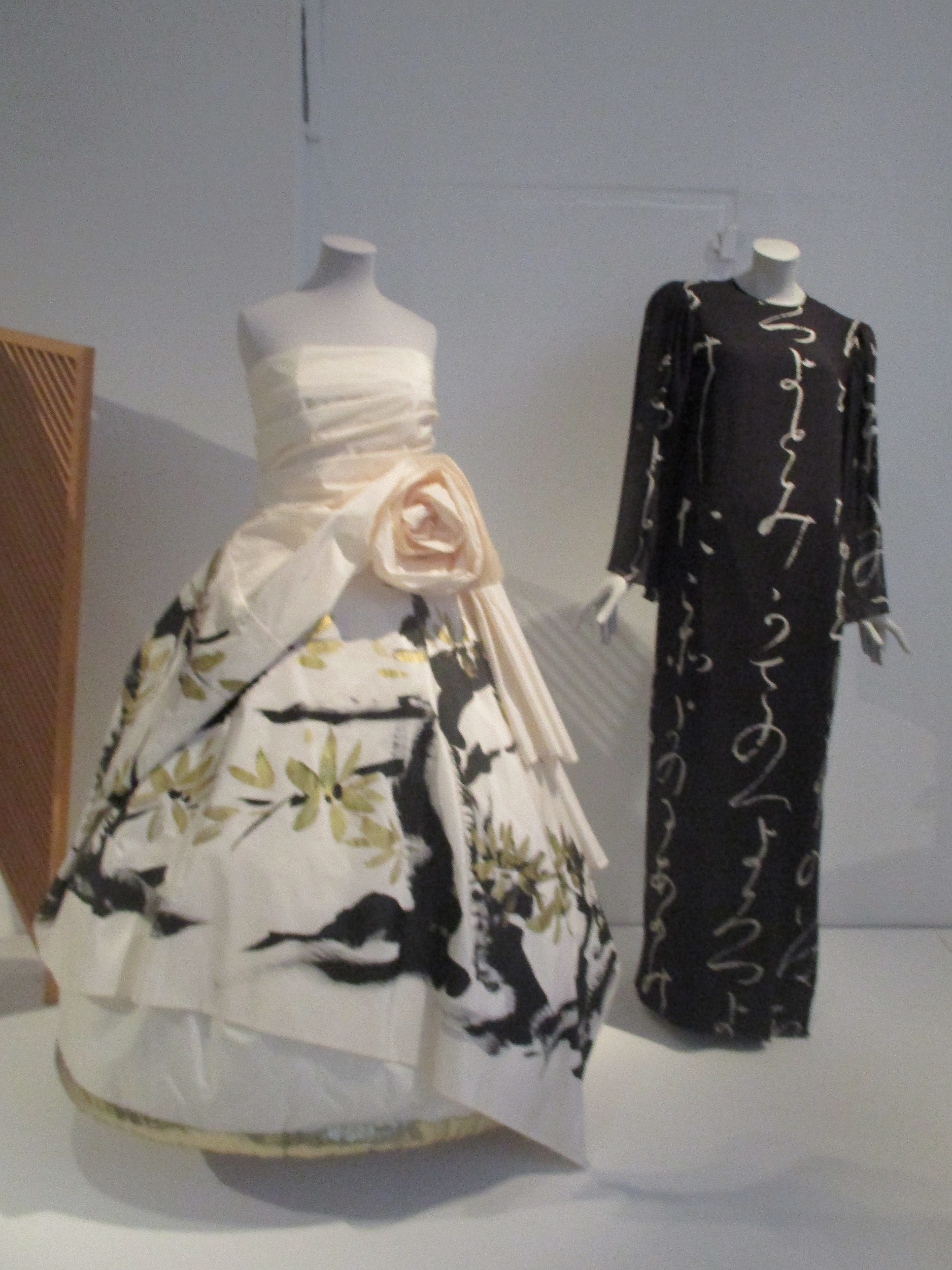 This section of the exhibition showing how early 20th C. designers adapted the design of the kimono to create looser, less form-fitting clothes was a favourite of mine. I am an admirer of Paul Poiret's fashion designs created for his haute couture fashion house, and it was a real thrill to finally be able to see one of his Mantle dresses (yellow dress, below), with its relaxed structure at close quarters.