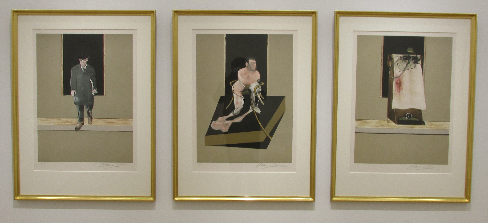 An exhibition of Francis Bacon prints timed to coincide with the current blockbuster show Francis Bacon: Man and Beast round the corner at the Royal Academy. This exhibition focuses on Bacon's graphic oeuvre. Bacon was biased against the print medium initially. He thought of prints as mere reproductions rather than their techniques as valid art forms in their own right. It wasn't until the proposal to illustrate the text of Surrealist poet René Crevel with his etchings that a change in Bacon's attitude was affected. This show focuses mainly on lithographic reproductions and aquatints of Bacon's more famous paintings and his own idiosyncratic take on the figure and human condition. Looking at the featured prints one can completely understand Bacon's reservations about the print medium. Something is lost in translation. These are just 'mere reproductions' of his more nuanced painted works and possibly created just as a commercial venture. As good as they are as reproductions they lack texture, the surfaces are flat and lifeless in comparison to their painted originals. Anybody having experienced an original Bacon painting will notice the differences. Unlike the print output of artists such as Rembrandt and his magnificent etchings for example, they do not say or add anything new to Bacon's oeuvre. This exhibition however serves as a nice little appetiser for what will be a more substantial main course of original Bacon paintings being served up at the RA when I visit Francis Bacon: Man and Beast.