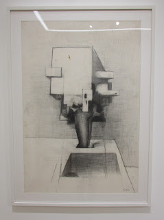 And thus art critic Herbert Read coined an original term for a new group of British sculptors emerging from the horrors of war, in an age of anxiety with US and Soviet tensions but looking towards the future. This 'geometry of fear' groups sculptures moved away from the smooth flowing forms of Henry Moore and Barbara Hepworth that had previously dominated the scene, to something altogether more angular, spindly and more confrontational. In a show called New Aspects of British Sculpture, which Read curated at the 1952 British Pavilion at the Venice Biennale, an international audience was introduced to this new wave of sculptors which included Kenneth Armitage (1916-2002), Reg Butler (1913-1981), Lynn Chadwick (1914-2003), Geoffrey Clarke (1924-2014), Bernard Meadows (1915-2005), Eduardo Paolozzi (1924-2005), and William Turnbull (1922-2012). The raw finish of much of the sculptures of this group was influenced by the works of Alberto Giacometti and an exhibition of French sculptor Germaine Richier's work that had been exhibited in London five years prior to the Venice Biennale show. Richier created distorted animal-hybrid sculptures with rough textural finishes. Distorted figures became an identifiable feature for most of the geometry of fear sculptors as did the use of animal imagery such as crabs and birds as metaphors for human behaviours and emotions. The rise of industrialisation processes and post-war recovery were other aspects incorporated into the development of the paintings and sculptures of the group. This is a fascinating small exhibition focusing mainly on sculpture, though it was great to see some Alan Reynolds paintings on display (previously with Prunella Clough here), as well as some Paolozzi and Sutherland drawings. The work of sculptor Reg Butler in particular stands out here. The upper gallery space displaying his studies and finished sculptures of the female form is particularly strong. Certain pieces brought to mind Degas' graceful bronze sculptural studies of ballerinas. This period in British art history was examined beautifully in an expanded show last year at the Barbican (here) which featured not just paintings and sculpture but installation, ceramics and photography too. The work of Lynn Chadwick fell under the spotlight at an equally good show at Pangolin also charting the influences on his work in that same post-war period (here).