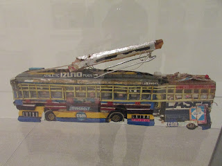These detailed models of trams made from metal, wood, packaging ephemera were exquisitely executed by Willem van Genk.