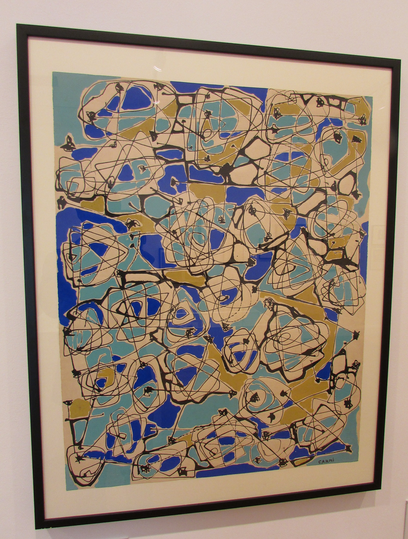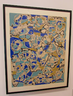 Happy New Year dear readers. Although the battle is far from over, somehow we managed to make it through to 2021. Let's hope for as swift a return to normal as possible this year so that good exhibitions like this can be enjoyed once again. It had been quite some since I had last visited the Estorick Collection in Islngton. Having been greatly influenced in my own work by Bauhaus textiles earlier last year (here) though, I was looking for further inspiration through fabric design. I was drawn (between lockdowns) then to return to the Estorick on this occasion for Italian Threads: MITA Textile Design 1926 - 1976, the exhibition of the archives of Italian textile company MITA (Manifattura Italiana Tappeti Artistici) currently on display. MITA (Italian Artistic Rug Manufacturer) was founded in 1926 by Mario Alberto Ponis in Genoa, who was interested in merging new technologies with traditional Italian crafts in the manufacture of hand-knotted carpets. From the outset MITA was renowned for its innovative collaborations with the best of Italian artists and designers. These collaborations proved fruitful and read like a who's who of the cream of Italian creativity - Gio Ponti, Ettore Sottsass jr and Fortunato Depero. These artists and designers reflected modern, cutting edge trends in their designs for MITA coming from avante-garde movements such as Futurism, Rationalism and Novecento. Genoa is a port city and many of MITA's commissions were from shipping companies eager to have their luxurious ocean liners kitted out with the latest in a range of textiles. MITA exhibited their wares at major exhibitions such as world fairs, and as well as producing rugs their range included carpets, tapestries, printed fabrics and scarves all represented in this interesting and inspiring exhibition. On display are numerous textile designs, their developmental sketches, swatches and original artwork. The midcentury MITA textile designs from the 1950s and 60s were the ones which held my attention most. The large tapestries verging on complete abstraction were particularly impressive. Viewing this exhibition I was reminded of the wonderful exhibition of Josef Frank's textile designs seen at the Fashion and Textile Museum (here) a few years ago.