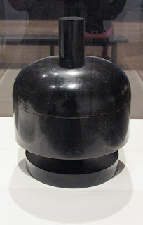 I wasn't quite sure what to expect from this exhibition. I had experienced some of polymath Sophie Taeuber-Arp's art through her designs for the modernist entertainment space L'Aubette in Strasbourg (here), and was aware of her associations with the Dada movement. I was much more familiar with the work of her husband Hans (Jean) Arp, than Taeuber-Arp's own. It was love at first sight on seeing her artwork however, as Taeuber-Arp's multi-disciplinary art encompassed all of the current interests in the development of my own work. Geometric grid structures. Check. Textiles. Check. Abstraction. Check. Collage. Double check! This exhibition ticked all of my boxes. I admired Taeuber-Arp's singular aesthetic rooted in geometry in her approach to her art and design. I felt it was all the stronger for the fact that she was trained at schools that emphasised the Bauhaus principles of the interrelationship between fine art, craft and design, and that she didn't seem to adhere to any art/design distinctions or hierarchy. Throughout her career she moved seemlessly between disciplines as an architect, interior designer, painter, performer, designer of textiles, woodworker, teacher and artist. Taeuber-Arp executed work in all disciplines to an equally high standard. Other modernists creating art at the period of the First World War arrived at abstraction through the breaking down of figurative elements in their art. Taeuber-Arp's abstraction though was derived from the very beginning with the drawing of geometric grid structures in her early textile investigations. The grid and bold, geometric shapes would underpin and inform all aspects of her oeuvre throughout the length of her career. This uplifting, revelatory, delightful exhibition displays all facets of that oeuvre, and is all the more interesting for showing just how talented and versatile Taeuber-Arp was as an artist/designer with such a distinctive visual style. Included are the delightful wood-turned marionettes for the production of Carlo Gozzi's 18th-century play King Stag, beaded jewellery, embroidered/needlepoint textiles and tapestry rugs, stained glass and architectural/furniture designs and of course those wonderful abstract paintings. Art historical revisionism has tried to restore the reputations of certain artists who were previously overlooked or who had fallen into obscurity. As a consequence of trying to redress the balance the contributions of some artists have perhaps been unjustly over-hyped. Sophie Taeuber-Arp's multi-disciplinary work in my opinion fully deserves all of the hyperbole and plaudits. This exhibition is a gem and will hopefully expose her work to a larger audience.
