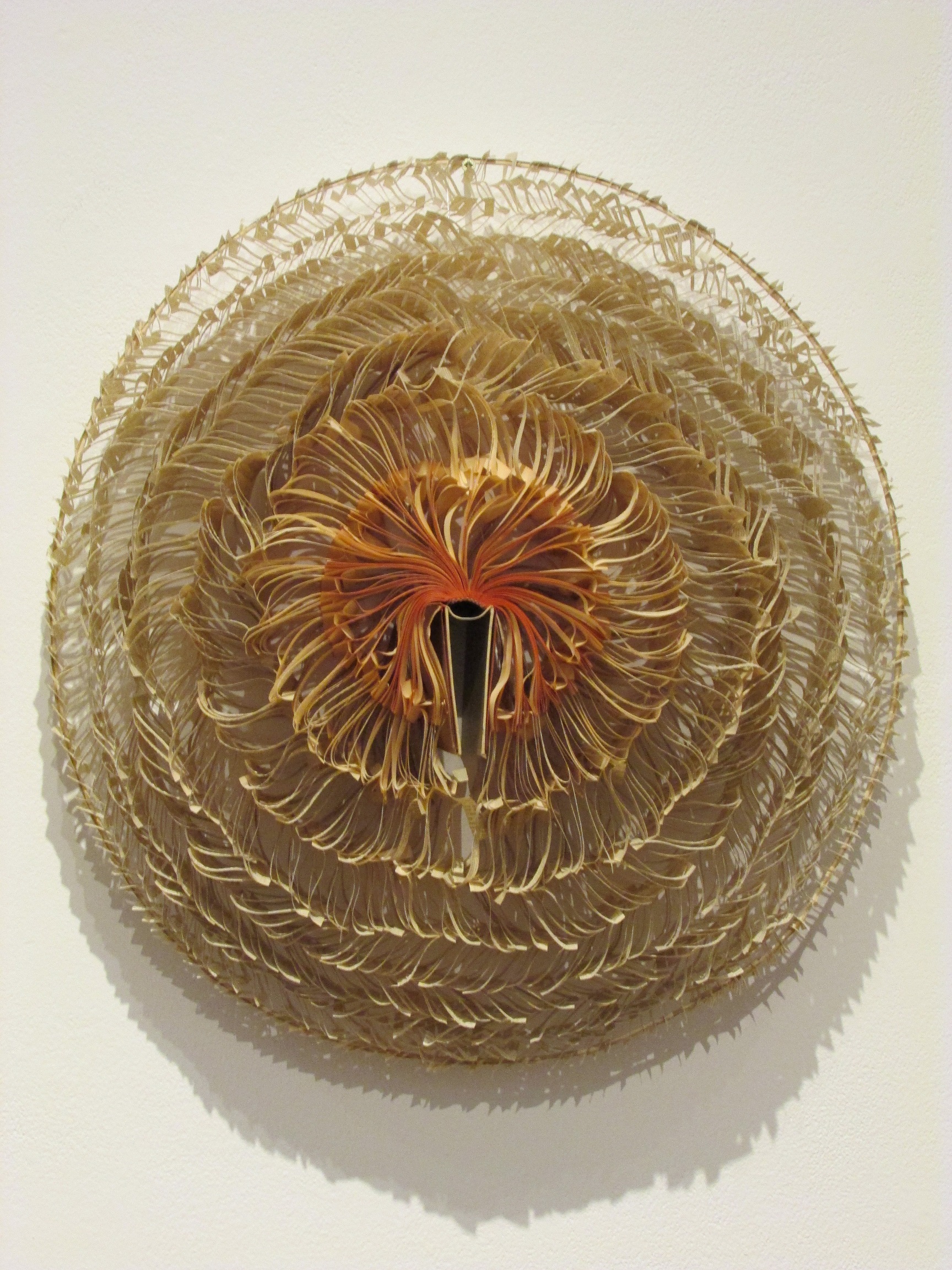 I've seen artists who work with books before, but I haven't encountered any who work with them on the scale of Jukhee Kwon. Kwon takes books through a process of alchemical transformation creating sculptural, poetic interventions deconstructing, slicing, dissecting, weaving and twisting the pages of found tomes to create something unique and quite spectacular in cascading installations like Oval Book Forum below. Through the artists inventive and creative process the meaning of the book is altered as well as its appearance. Kwon's pieces are painstakingly assembled and in many the texts are still legible despite being cut away from the spine of the book. I spotted certain themes/motifs in the work such as protective cocoons and tumbling sheets of text left hanging in space. Hailing from South Korea Kwon's work with paper follows a cultural tradition which I learnt about when visiting an exhibition of hanji at the Korean Cultural Centre last year (here). Although not as sculptural, aspects of Kwon's work has links with artist Kwon Young-Woo whose work I also discovered last year at Annely Juda (here).