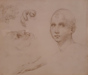 A small, well curated exhibition this, pitting the three Renaissance era titans of western art against each other. The year was 1504, and in Florence a committee of the most prominent artists had gathered to decide on a location for Michelangelo's David sculpture. One of these artists was Leonardo da Vinci who had recently returned to Florence. This exhibition at the Royal Academy of Arts investigates the rivalry between Leonardo and Michelangelo, how each studied and copied from each others art, as well the influence they exerted on the younger Raphael, as all three competed for commissions from Florence's most important patrons. Michelangelo's Taddei Tondo, his sole marble sculpture in the UK, dominates the opening of the exhibition surrounded by preparatory drawings. This work is owned by the RA and was created at the time when all three artists were present in Florence. We see just what an impact this relief by Michelangelo had on Raphael in two of his beautiful paintings, The Bridgewater Madonna, and The Esterházy Madonna, both on loan and exhibited nearby in which he takes the Michelangelo's motif of the Christ child twisting his body on the Virgin's lap to give a sense of dynamism and movement to the composition in his Bridgewater Madonna painting. Leonardo is represented in the middle of the exhibition by his large, gorgeously ethereal drawing The Virgin and Child with St Anne and the Infant St John the Baptist, ('The Burlington House Cartoon'), given the honour of a room all to itself. It is a dark, and serene mystery. A marvel of chiaroscuro, so sensational that Giorgio Vasari tells us crowds queued for days to see it when it was first exhibited. It certainly elicited hushed crowds looking on in reverence on my visit. These large works aside, the exhibition is made up of a good amount of drawings and sketches emphasising the importance of the discipline and exercise of drawing on all three artists. They used drawing as a means for investigation, working out compositional details and recording the body and the alignment of muscle and bone in life drawing poses, as well as copying from other artists for an understanding of their methods and thought processes. The exhibition culminates with drawings showcasing the mythic encounter between Leonardo and Michelangelo. In 1503, the Government of Florence had commissioned Leonardo to paint a monumental mural, the Battle of Anghiari, in its newly constructed council hall. In late August or early September 1504, around the time Michelangelo’s David was installed on the ringhiera in front of the Palazzo Vecchio, Michelangelo was asked to paint the accompanying Battle of Cascina. Neither project was ever completed, but the exhibition brings together Leonardo and Michelangelo’s much-admired preparatory drawings from various collections across Europe, including an important group lent by His Majesty The King from the Royal Collection, providing a fascinating insight into the approach of both artists as they developed their compositions. The exhibition concludes with a drawing by Raphael, c. 1505-06 (Ashmolean Museum, Oxford), in which he painstakingly copies the central scene of Leonardo’s Battle of Anghiari. This exhibition is was a nice taster for a planned visit to Milan in which I discovered more Renaissance era gems, more on which in future posts.